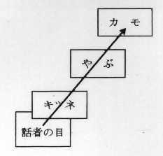 (説明1) この場合、話者は「キツネ」に重なっている、と言います。