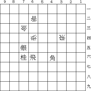 ここでは46角、69玉の2つの手を初手において生成し、後手番の54歩を咎める手(ここでは存在しない)桂を取っての77飛成を防ぐ手を生成する。