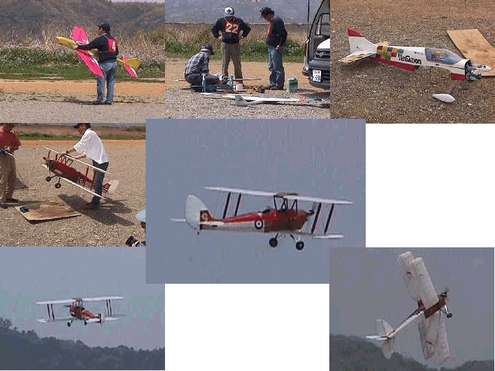 大会の昼休みには、高知ラジコンクラブの方々のデモフライトがありました。超スロ−アクロバット飛行のタイガ−モスはすごい低空でのスロ−ナイフエッジや、背面、ロ−ルなど楽しませていただきました。吉岡さんのセンセ−ションも楽しみにしていましたが、エンジントラブルで飛ぶのが見られなかったのが、少し残念でした。