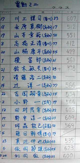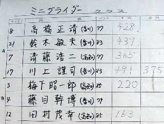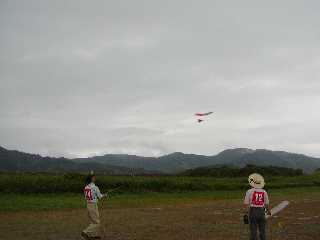 今大会も、いつもの事ながら電動オープンと電動ミニにエントリーさせていただきました。また、今回はタイムキーパーとして小4の息子も一緒に参加しました。息子の目的は前夜の土佐料理堪能だったようですが・・・・・。しかしながら、少々の雨でも皆さん積極的にフライトされて結構白熱した大会でした。でも、天候には勝てず、すべての種目を1ラウンドのみで終了せざるを得なかったのが残念でしたが、幸い電動オープンで優勝させていただきました。(^^;
