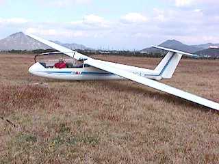 2000年の12月より、防府北基地をベ−スに活動されている中国航空協会に入会させていただき、16年ぶりのフライトをすることが出来ました。この12月24日、大阪よりSt.Libelleも加わり、個人所有機を含めて4機の機体で活動しております。北西風が吹けば、斜面上昇風を利用したフライトも出来るすばらしい環境にあり、航空自衛隊基地を利用している利点として、広大な着陸エリア、横風専用のRWも利用できる、他の社会人クラブでは考えられない環境です。とりあえず、今回は所有機を紹介させていただき、のちに、私のフライトログでも紹介させていただこうかと思います。(2000.12)