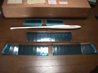 高知のサ−マル大会で一見して以来、次期電動ミニクラスの戦闘機にと実は香川県丸亀の大会に間に合うように、注文していた機体ですがなんと2ヶ月遅れてしまいました。今回はNSPさんから取り寄せましたが、FVK社直にも取り寄せられるそうです。この機体は、とても良くできた機体です。主翼はケブラ−Dボックスバルサリブ、カ−ボンリブキャップ、後縁もカ−ボンです。胴体はケブラ−にカ−ボンロ−ビングが多く使用されています。複合材料ハイテクの固まりのような機体です。完成度は99%以上。全て穴開け、位置決め、すりあわせが出来ており、胴体、主翼、尾翼に固有の番号が付けられ、1機ずつすりあわせしてあるのが解ります。このキットは「INPULS」と言う名前でも、売られているようです。付属のA4の紙にも、機体にもロゴが入っていました。