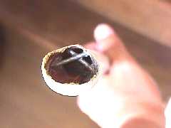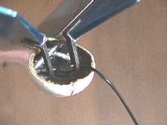 付属のカ−ボンホ−ンに1mmの穴を開けてピアノ線をL型に曲げて通しているだけです。抜け、ガタはありません。尾翼分解時は外すことが出来ます。写真では見にくいのですが、リンケ−ジ用のガイドパイプ受けを3cm奥に作成して埋め込んであります。このため、ピアノ線は内側に挟み込む力があるのでホ−ンには差し込むだけで大丈夫なのです。