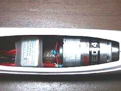 胴体の内部に、機体番号。カ−ボンロ−ビングが多く使われています。キャノピ−の取り付けもワンタッチ式になっており、キャノピ−側面のツメを胴体に引っかけて固定します。
