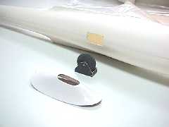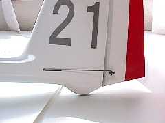 この行程も図面通りですが、エレベ−タ−ホ−ンは位置決めをしっかりしてやって下さい。垂直尾翼上部は図面指示はありませんが、ホ−ンが干渉しますので、ル−タ−で削り取って上に開口部を設けています。(ホ−ンは完全に垂直尾翼内に収まります。)ラダ−ホ−ンは図面指示通りですが、リンケ−ジロッドは胴体から出たところを曲げなくてもストレ−トでOKです。
