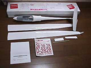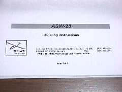 ICAREさんのHPに登場して以来、ねらっていた機体です。製作元は不明。この機体は、とても良くできた機体です。キャノピ−周りの加工、取り付けまで出来ています。ASW−28の特徴である、大きなウイングレットも、見事に再現されていました。主尾翼はバルサシャ−レ、胴体はGFRPです。主翼の取り付け部分もカンザシ、後縁の位置決めピン穴も開いていますので、簡単に仮組が出来ました。 いつものようにA4サイズの説明書(ICAREさんのロゴ入り)。リンケ−ジパ−ツもしっかりとした物が付属していましたので安心。主翼は2分割でFRPカンザシ8mm丸棒でつなぎますが、とてもしっくりしています。 ■尾翼周りの加工