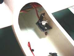 主翼にはエルロンサ−ボ搭載位置にケガキが入っていますので、その部分を丁寧にカットします。サ−ボは9gサ−ボの爪を切ってぎりぎりです。サ−ボの固定は、両面テ−プで仮止めして、ホットボンドで固定します。サ−ボカバ−もFRP製のものが付いていますが、ちと精度が悪いようです・・・(^^; ■モ−タ−マウント取り付け、メカ搭載