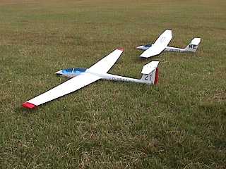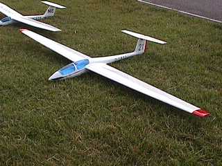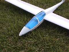 ノ−ズの大破を修復し、本日重心位置を変えてテストフライトをしました。重心位置は前縁から38mmの位置です。アンプ&サ−ボが軽いせいか、重心位置を40mmより前に出すにはバラストが必要になります。今回15gほどバラストをノ−ズに積んで設定しました。 肝心のフライトですが、重心がこの位置でも少しノ−ズが軽い感じです。但し、翼端失速する状態ではありません。少しダウントリム気味でいい感じです。テストフライトのつもりでしたが、サ−マルに入りセンタ−リングすると、どんどん上昇していきます。沈下も少なくヨ−方向、ロ−ル方向の安定もあり、安心してサ−マルソアリングが楽しめます。あまりにも降りてこないので、かなりスピ−ドを出して見ましたが安定性は抜群です。飛んでるスタイルも気に入ってしまいました。また良い機体を手に入れることが出来て、大変満足しています。 |