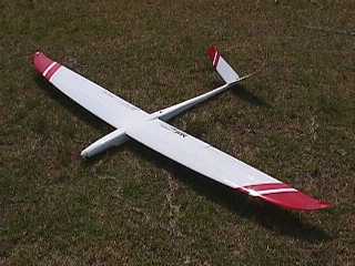 過激電動グライダ−第3段、Soloをそろそろ引退させて、本格的にF5B/600を練習するために、以前から目を付けていたこの機体をようやく手に入れました。Soloのユニットを利用すれば、手投げ直後の不安定さも解消でき、気軽にF5B/600の練習が出きる機体です。この機体はHKMのロゴが主翼に入っていました。(良いものをヤフオクで入手出来ました。)