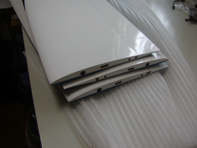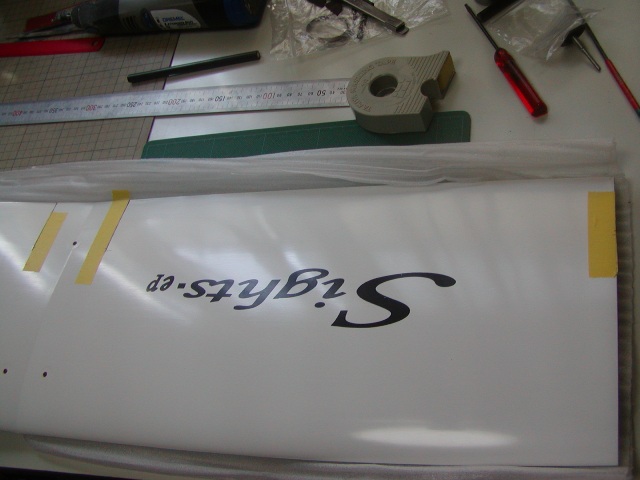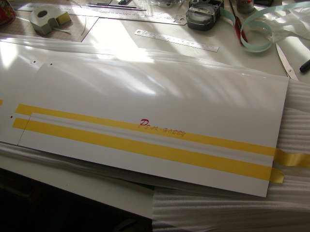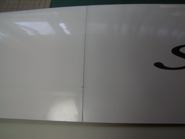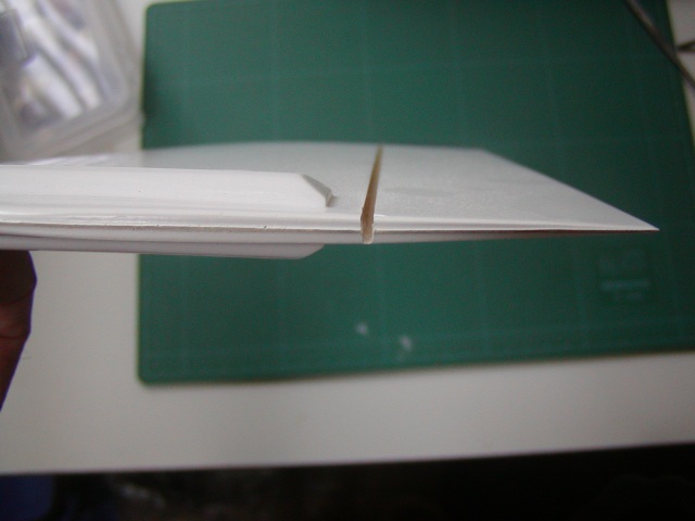 | 先に後縁側をカットし、最終位置をさらにカット。3mmの隙間を設けます。 こうしないと、がっぷシール加工もで来ませんしフラップを上に上げられません。 |
