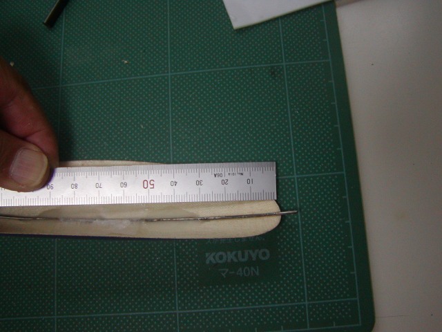 | 例の砥石と金尺でエルロンヒンジラインを削りファブリックヒンジを出します。 |