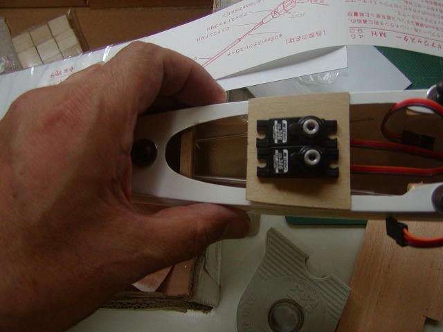 | サーボマウントは航空ベニアから切り出して造りましたが、サイズは胴体上部の大きさでぴったり来ます。 |