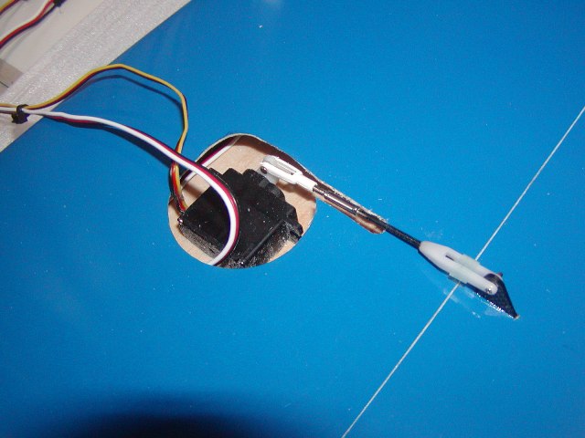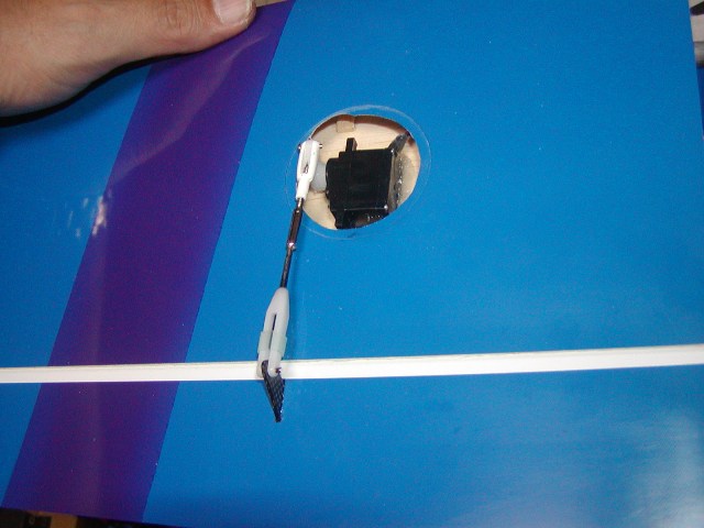 | このように固定して胴体リンケージは完成です。 リンケージパイプはしっかりと引っ張って緩みが内容に台座に接着するのがコツ。 |