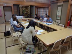 今月の反省、来月、再来月の予定を打合せ。どのような行事になるか楽しみです。 |