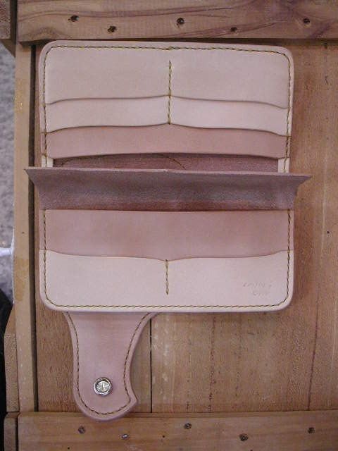 基本仕様はpremium001とほぼ同じです。 大きな違いは、コインケース前のカード入れが2か所に増えてます。 あと、留め部のフラップが本体と一体型になっています。 一体になったことにより、背面がすっきりとシンプルになりました。 内容は、フラップ式コインケース1か所、カード入れ6か所 お札入れ2か所、フリースペース1か所sです。 コインケースとお札入れの間と、お札入れとお札入れの間にも カードを収納するスペースがありますので、大量のカードが持ち運びできます。 |