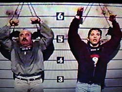 んで捕まる