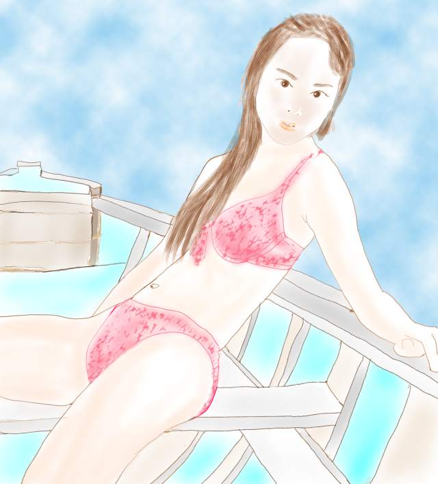 本当は、髪が濡れてなえているのですが、それを表現するうまい方法が見つからなくて、