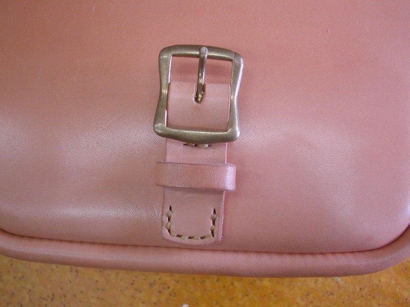 ![]() 留め具は真鍮製のバックルを使用。 革とともに経年変化していきます。 |