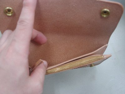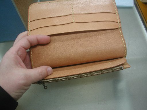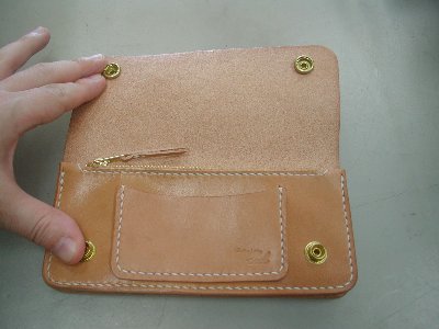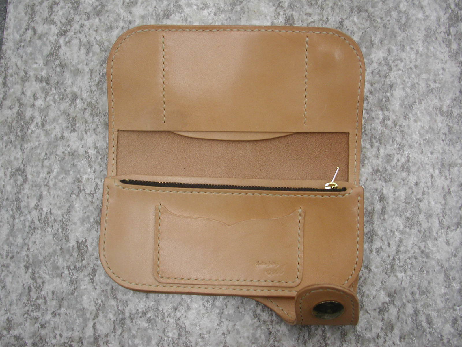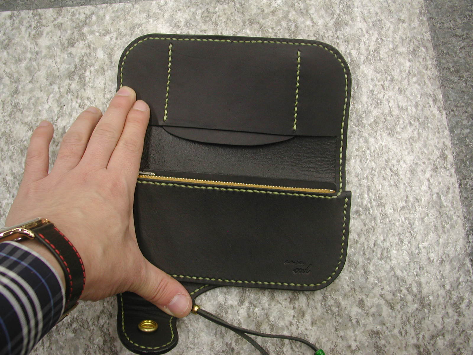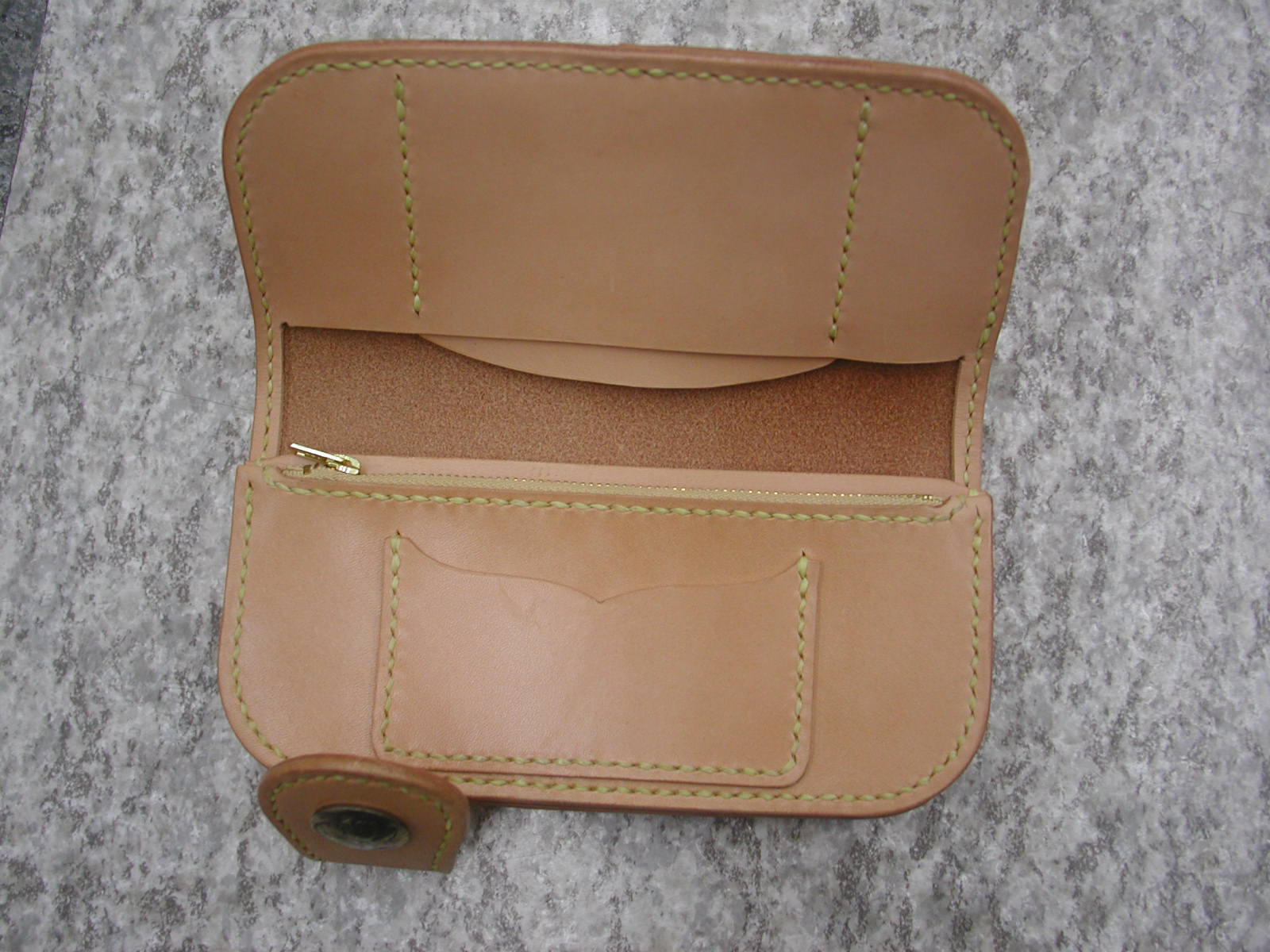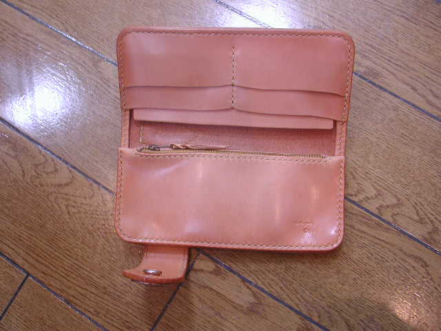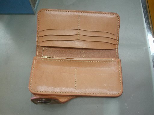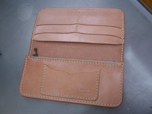 カード入れは合計6箇所、小銭入れはタロンジッパー式、糸はシニュー糸です。