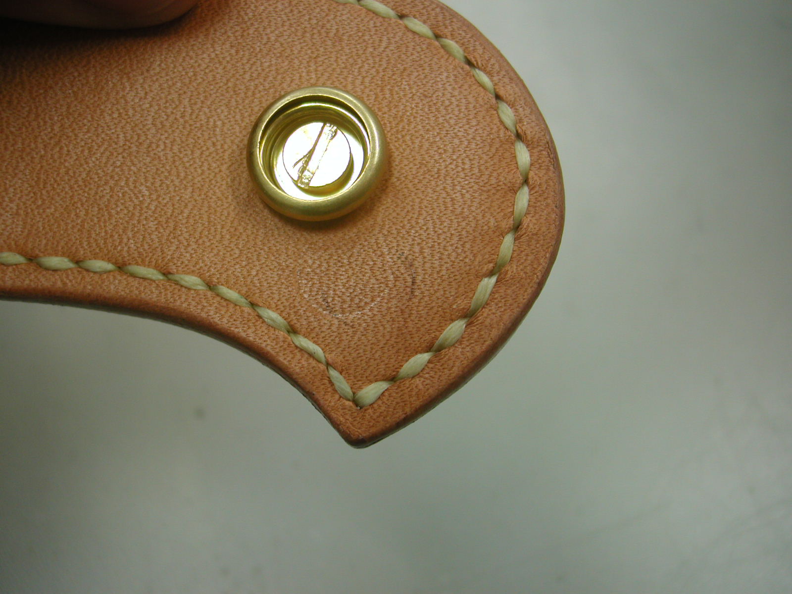 留め部の裏側に、円状の跡があります(金具が触れていて黒ずんだ跡)